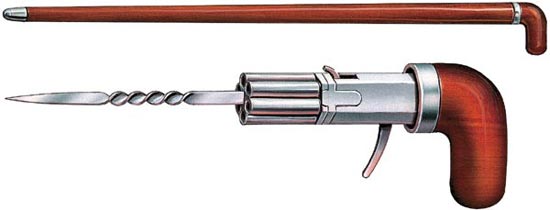 Когда то в Европе трость являлась неизменным атрибутом мужского костюма человека из высшего общества, да и среди мещан трость не была редкостью, однако сегодня молодой (вернее сказать не пожилой) и не хромой человек с тростью в руке обязательно привлечет к себе лишнее внимание. В том числе и внимание со стороны тех от кого данное внимание нежелательно, а именно криминальных элементов, уличных бойцов и правоохранительных органов. При этом и теми и другими и третьими трость будет воспринята именно как оружие самообороны и если милиционеры лишь проверят ваши документы, то для криминальных элементов и стритфайтеров (уличных бойцов) трость послужит лишь стимулом, чтобы при случае проверить вас «на прочность». Поверьте и те и другие наверняка найдут, что ей противопоставить. То есть трость не подходит на роль оружия повседневного ношения именно по той причине что ее «скрытое» или «условно – скрытое» (аксессуар – оружие) ношение в данный момент невозможно. Первый вариант не подходит из – за больших габаритов трости (в рюкзак или сумку трость не положишь), а второй из – за несовместимости ее (кроме случаев старости или проблем со здоровьем) с современной культурной традицией. С другой стороны трость может стать заметным подспорьем для самообороны как раз тех категорий граждан, в чьих руках она не вызывает вопросов. А именно для пожилых людей и тех представителей молодежи, что в данный момент имеют проблемы с ногами (особенно если эти травмы временные, а не хронические). Самодельные трости, скорее всего, вызовут вопросы и подозрения в любом случае, поэтому лучше всего пользоваться тростями заводского изготовления, пускай и стоят они порой не очень дешево. В плане использования трости по прямому назначению (для опоры) удобнее конечно трости с «Г» - образной рукояткой. Но для целей самозащиты предпочтительнее выглядят трости с массивным (но в меру) стальным набалдашником. Как подсечка так и захват противника «Г» - образной рукояткой трости являются «киношными» приемами, эффективными в довольно ограниченном количестве случаев и требующими довольно высокого уровня мастерства. При этом колющие удары свободным концом трости, тычковые удары набалдашником и маховые удары (набалдашником или свободным концом трости) гораздо проще в исполнении и эффективнее. Заменителем трости, не вызывающим подозрений может послужить зонт – трость. Существуют даже специальные модели зонтов - тростей, конструкция которых (включая степень прочности) разработана для целей самообороны (например, американский зонт - трость Unbreakable Umbrella (UU)). Однако достать таковые в России затруднительно – разве что заказать их в зарубежных интернет – магазинах. Что касается пустотелых тростей со скрытыми внутри шпагами (набалдашник в них выполняет роль рукоятки шпаги), то в массовом сознании они являются экзотическим атрибутом киношных злодеев аристократической внешности. Поэтому многих читателей наверняка удивит тот факт, что ряд зарубежных фирм выпускает такие трости – шпаги серийно и открыто их продает. В том числе их производит и известная американская фирма (специализирующаяся на холодном оружии) Cold Steel. И эту продукцию можно заказать даже через некоторые отечественные интернет - магазины. Причем сконструированы трости – шпаги таким образом, что для самозащиты п